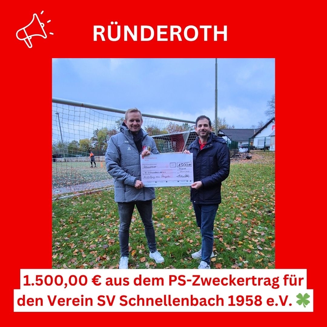 Mit dieser Unterstützung können wir unsere Vereinarbeit beim Sv Schnellenbach 1958 e.V. weiter ausbauen und in die Zukunft investieren. Ein herzliches Dankeschön an die KSK-Köln und alle, die das möglich gemacht haben – für euren Einsatz und euer Engagement für den Vereinssport in unserer Region!